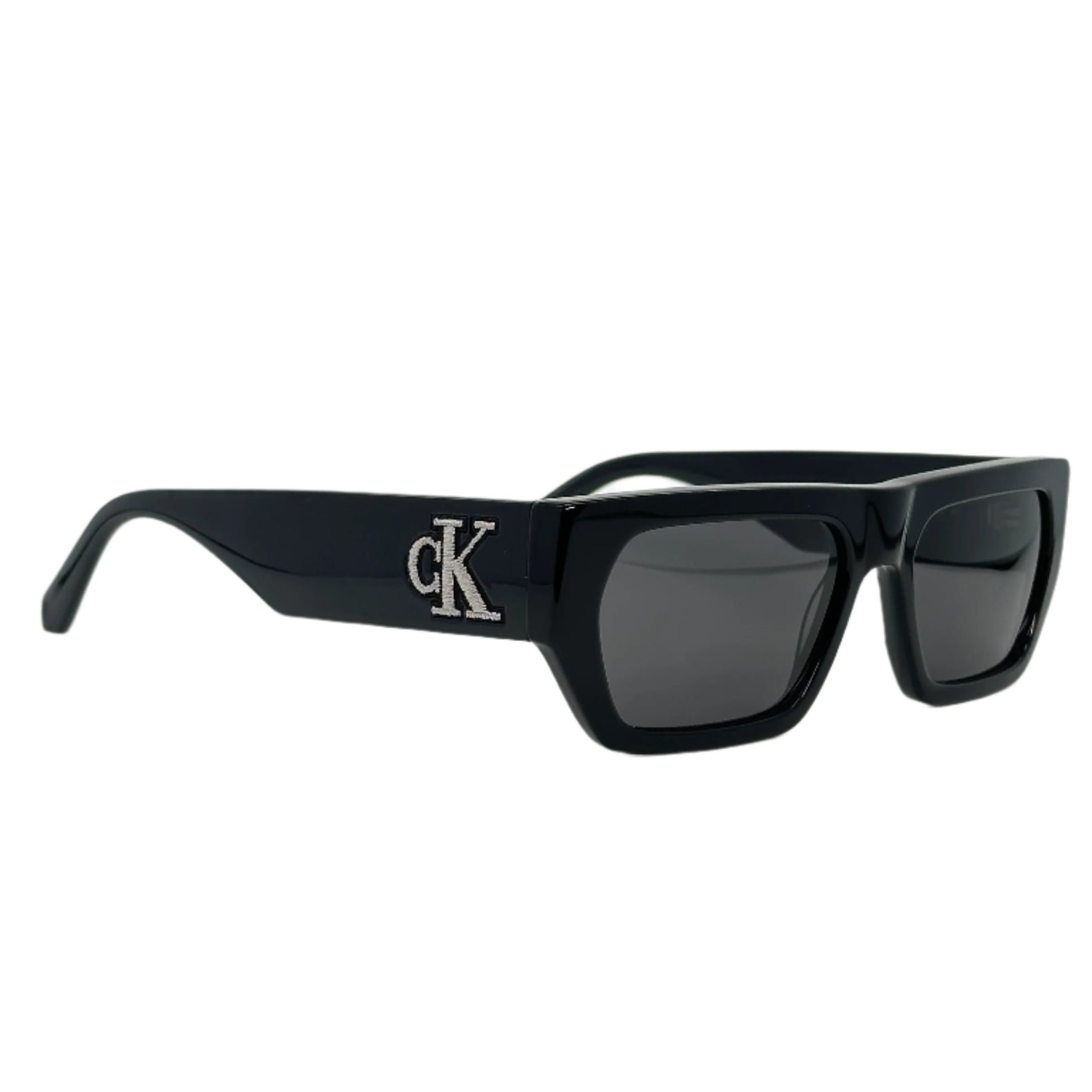 Understated Branding: Features discreet Calvin Klein logo engraving on temples for elegant detail