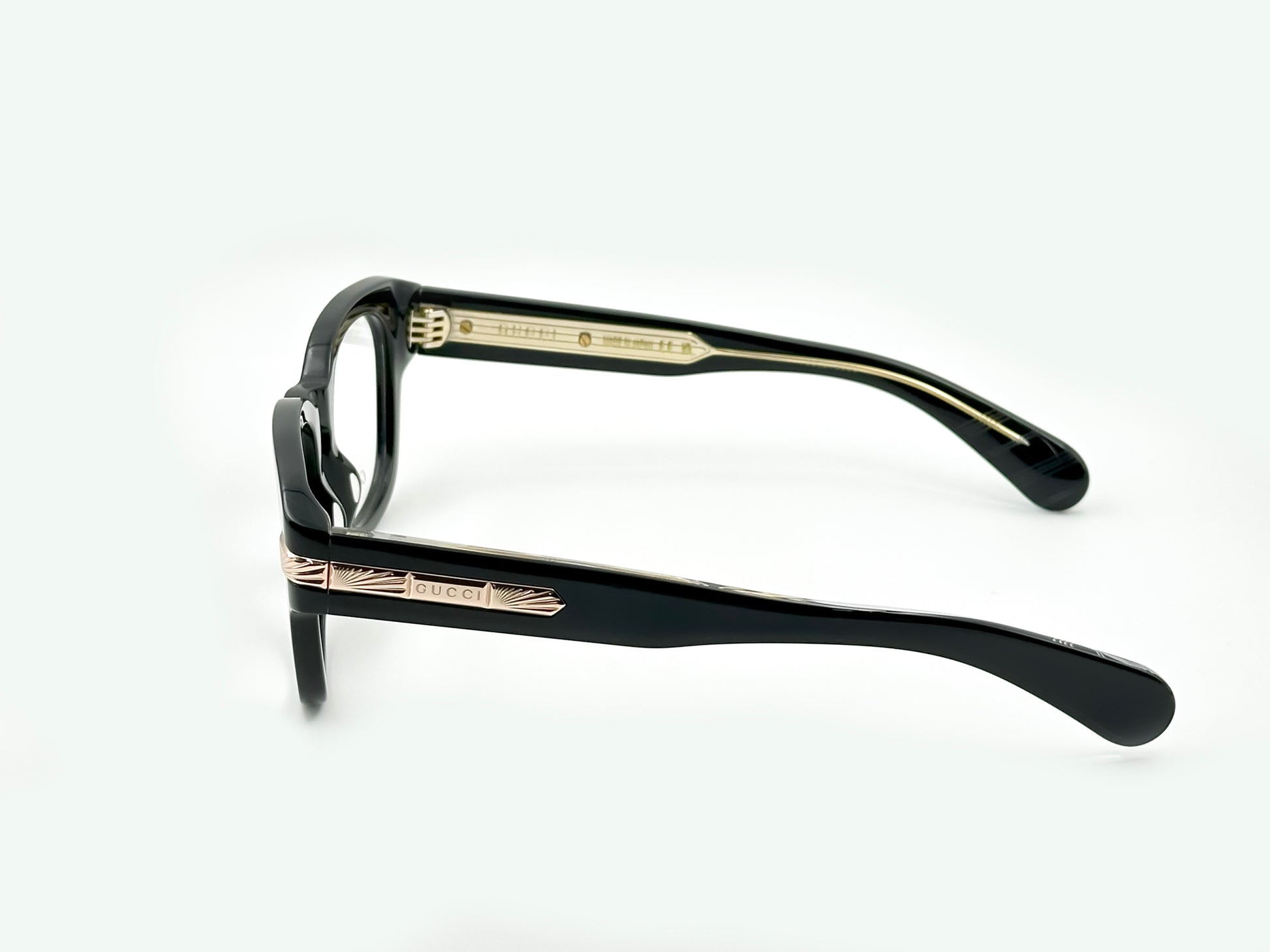 - Design Details: Inspired by architectural elements from 1930s Manhattan, the temples are adorned with a diamond-shaped metal plaque featuring the lasered Gucci lettering logo, adding a touch of vintage sophistication.