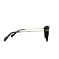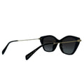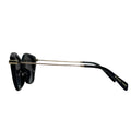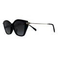 Polished black front paired with light-gold temples creates an upscale designer feel
