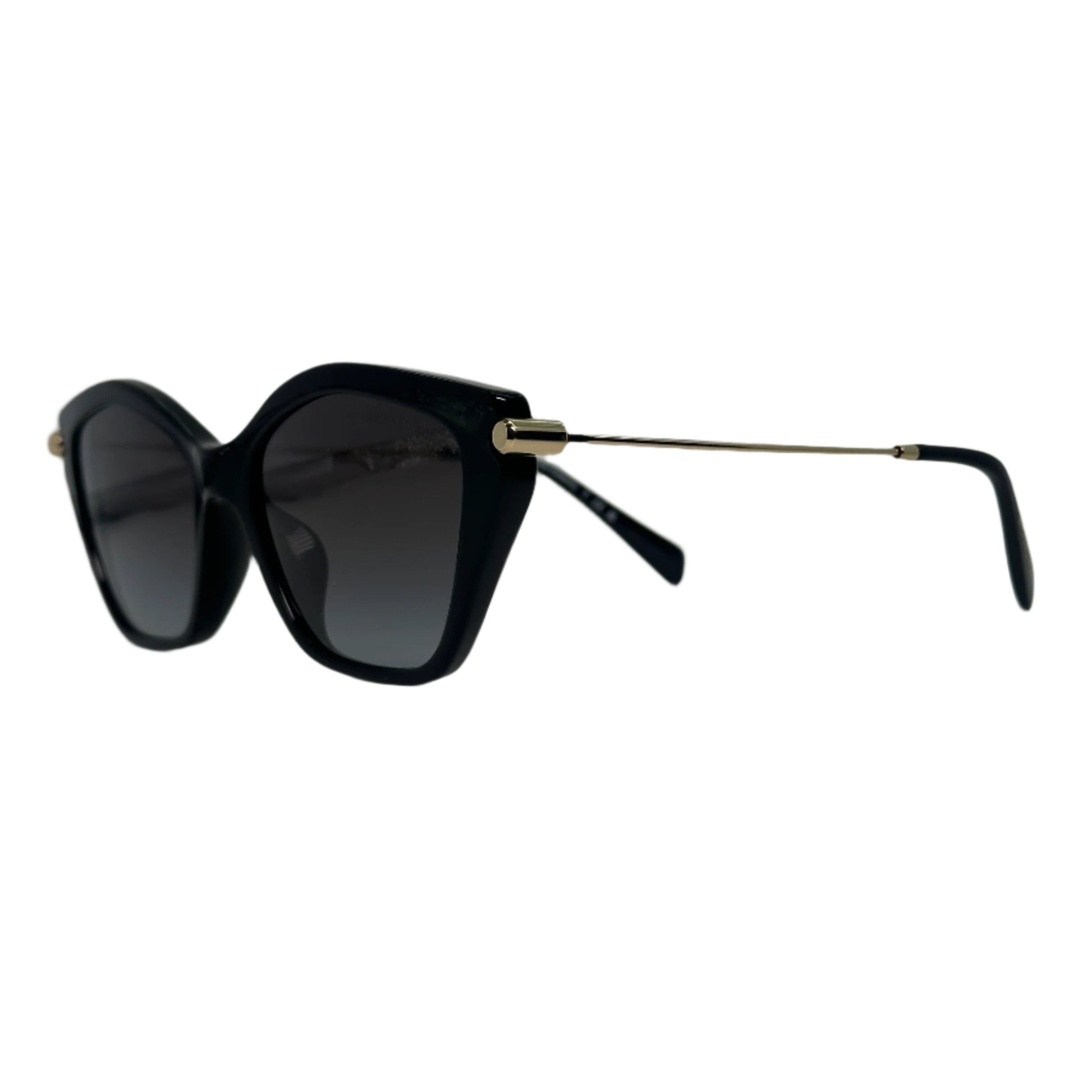 Frame: Glossy black acetate front with light-gold metal temples